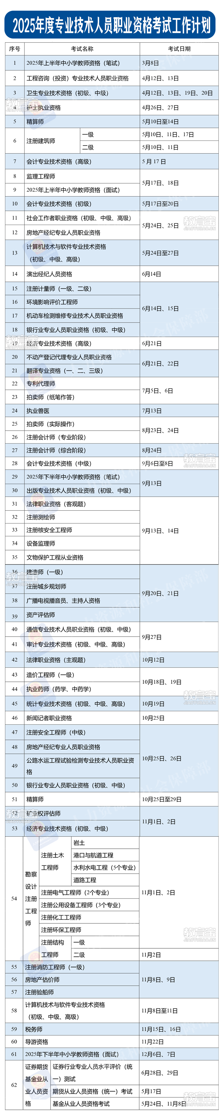 定了!2025年度专业技术人员职业资格考试时间表公布→