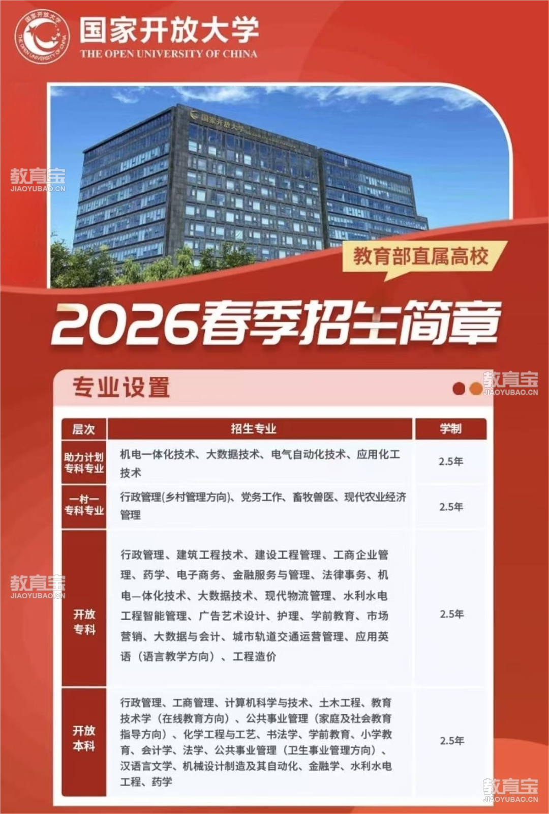 开放教育实行的是“免试入学”,前置学历通过入学资格审验后,即可入学,院校自主招生,无需参加成人高考。